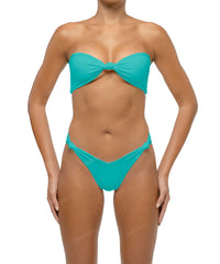 - Detail Feature: V-waist bikini top, Front Knotted detail, Mid rise, High cut