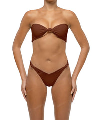 - Detail Feature: V-waist bikini top, Front Knotted detail, Mid rise, High cut