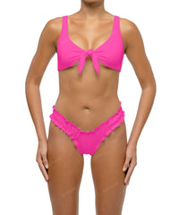 - Detail Feature: Lettuce hem bikini bottom, V-waist shape, Brazilian brief style, Low rise, High cut