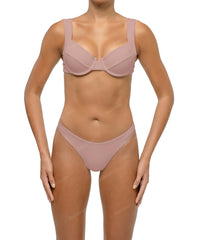 - Detail Feature: Basic bikini bottom, Brazilian brief style, Curved waistline, Visible cover stitch, Mid rise