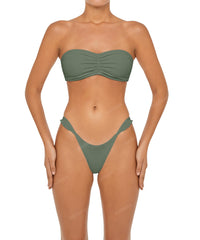 - Detail Feature: Low rise bikini bottom, Ruffle detail, High cut