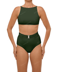 - Detail Feature: High rise bikini bottom, Detachable belt, Belt loops on waistband