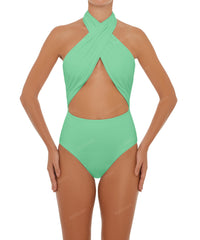 - Detail Feature: Halter criss cross one piece, Adjustable halter ties, Low back