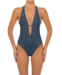 - Detail Feature: Plunge V-neck One piece, Halter ties, Adjustable underbust, Adjustable tie closure, Low back