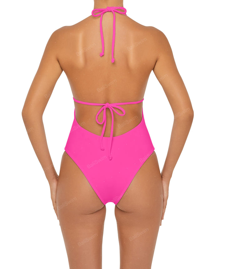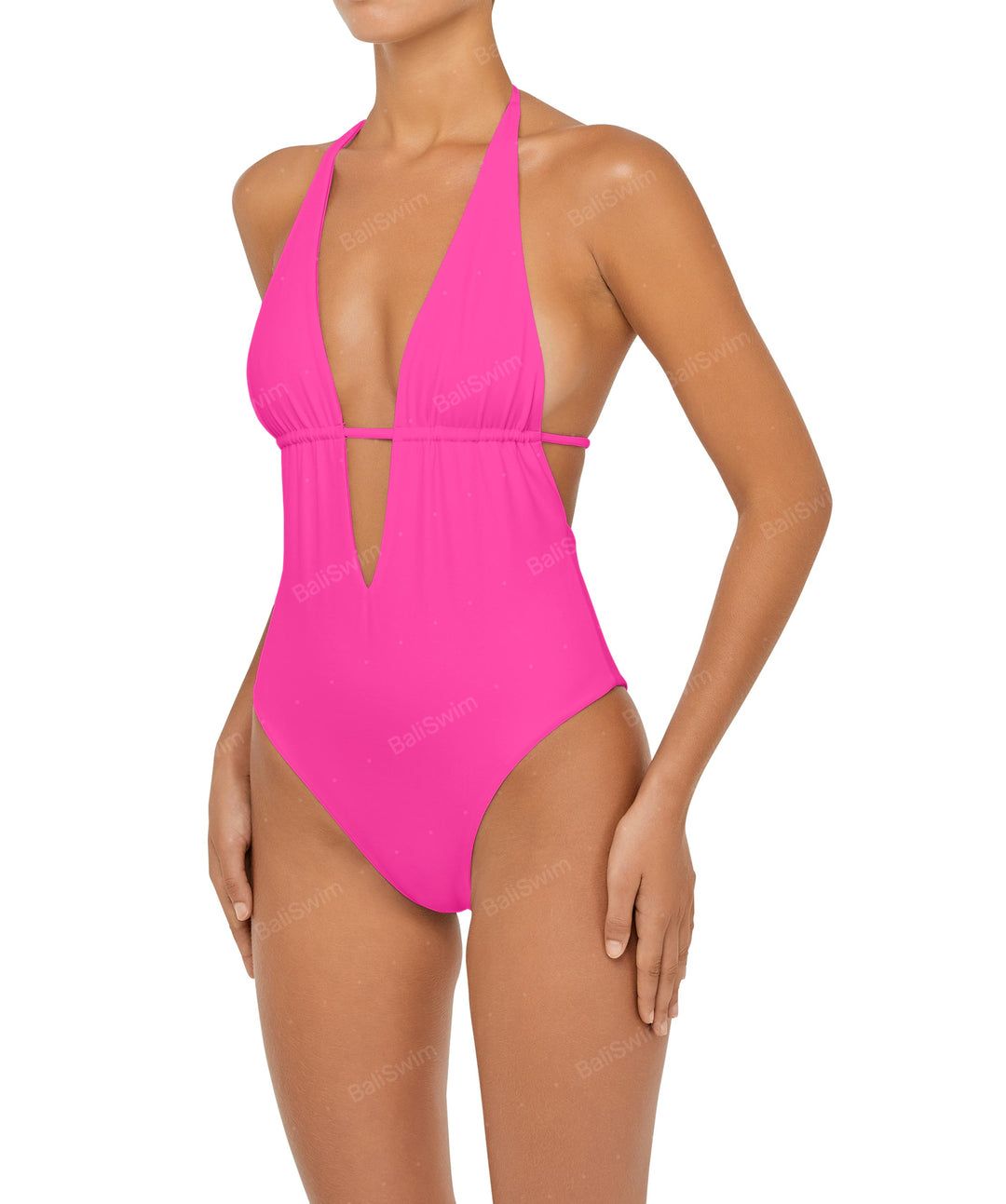 - Detail Feature: Plunge V-neck One piece, Halter ties, Adjustable underbust, Adjustable tie closure, Low back