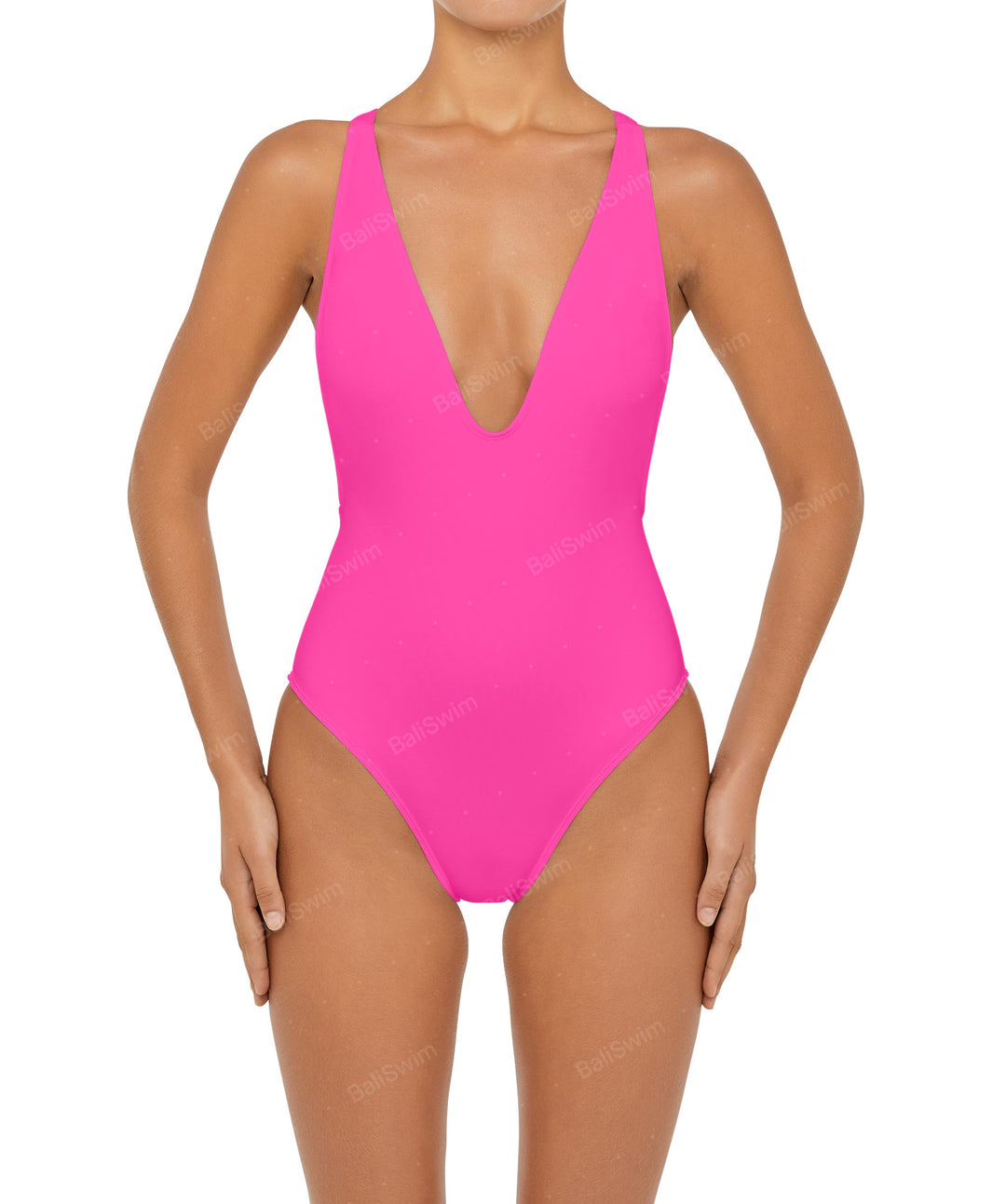 - Detail Feature: Plunge V-neck One piece, Criss Cross wide back strap, Fix strap, Low back