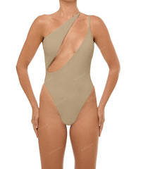- Detail Feature: Asymmetric cut out one piece, Adjustable double shoulder straps, High cut, Low back