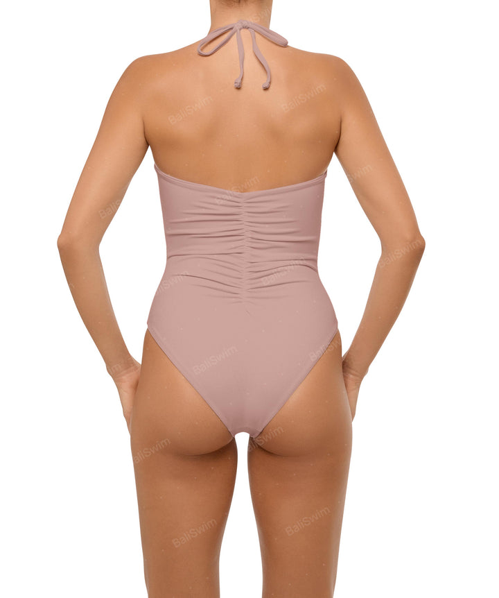 - Style: Ruched Halter One Piece