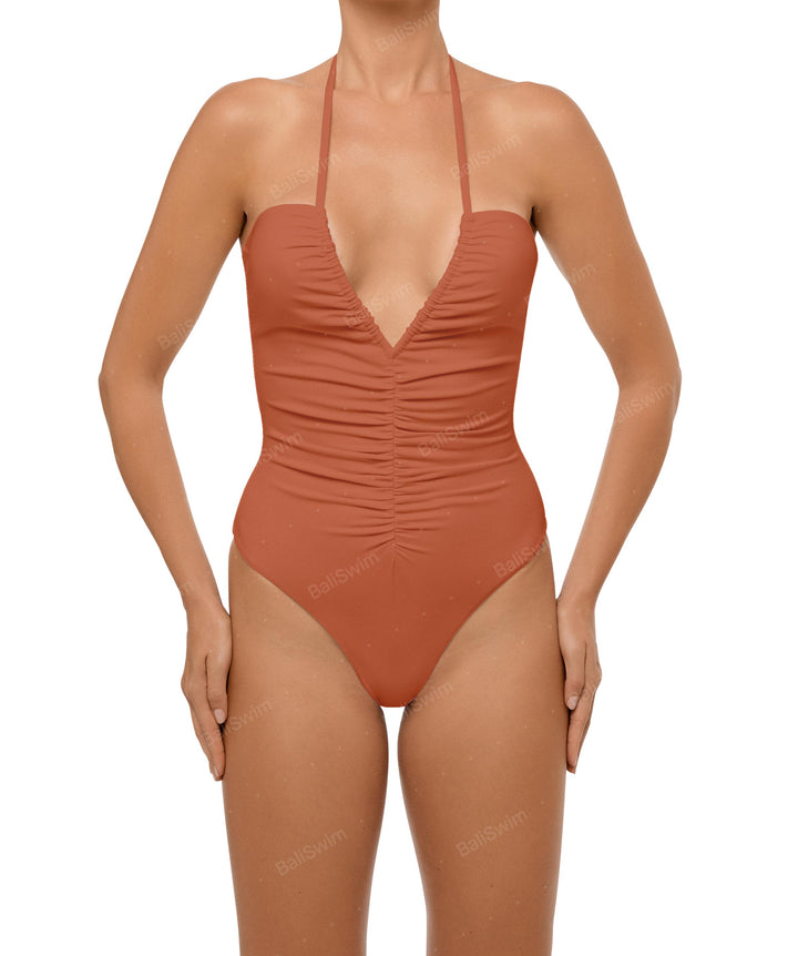 - Detail Feature: Ruching details, Adjustable halter neckline
