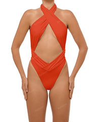 - Detail Feature: Halter cut out one piece, Adjustable halter ties, Criss cross neck, Ruched waist and side seam, Low V-waist, High cut, Low back