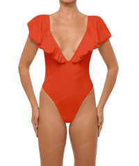 - Detail Feature: Flounce sleeves, Low V-neck, Low back, High cut