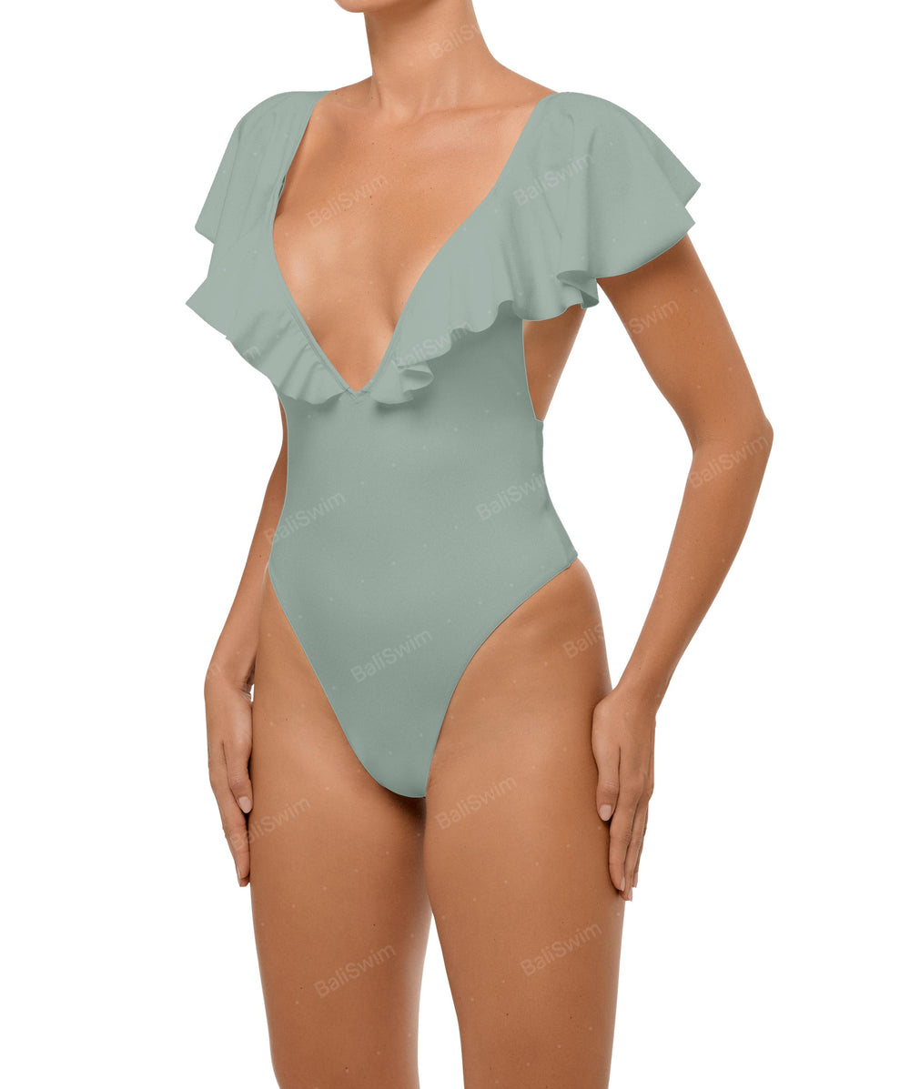- Detail Feature: Flounce sleeves, Low V-neck, Low back, High cut