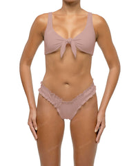 - Detail Feature: Plunge V neck bikini top, Front tie knot closure