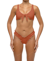 - Detail Feature: Plunge V neck bikini top, Front tie knot closure