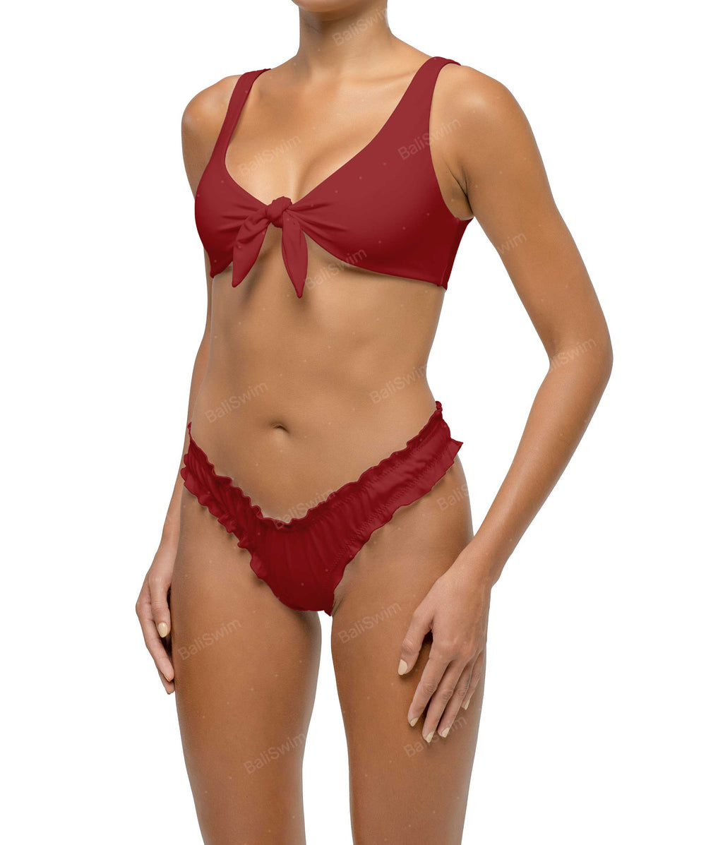 - Detail Feature: Plunge V neck bikini top, Front tie knot closure