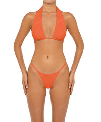 - Detail Feature: Halter bikini top, Adjustable underbust, Adjustable tie closure