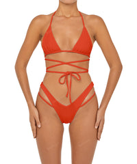 - Detail Feature: Triangle Bikini Top, Adjustable underbust, Halter ties, Adjustable wrap around straps detail