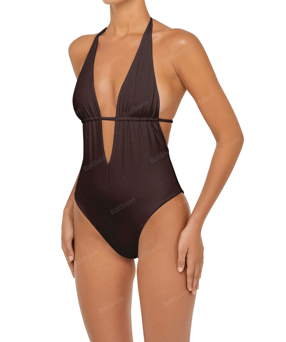 Plunge Neck Criss Cross One Piece