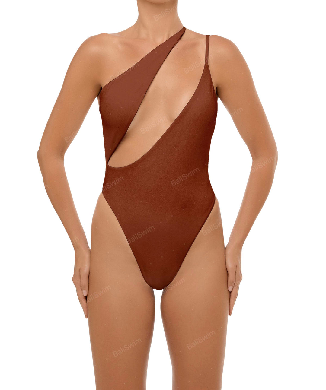 Assymetric Cut Out O-Ring Monokini Color Merah Bata by Bali Swim