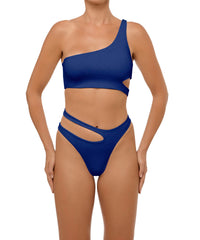 - Detail Feature: Mid-rise, High-cut bikini bottom with an Asymmetric cut-out design