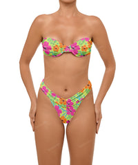 - Detail Feature: Underwire bandeau bikini top, Gathered bust detail, Clasp Closure