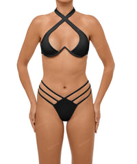 - Detail Feature: V-underwire bikini top, Crisscross halter neck, Adjustable neck tie, Pull on style