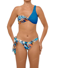 - Detail Feature: Asymmetric bikini top, Fixed shoulder strap, Front loop detail, Clasp closure