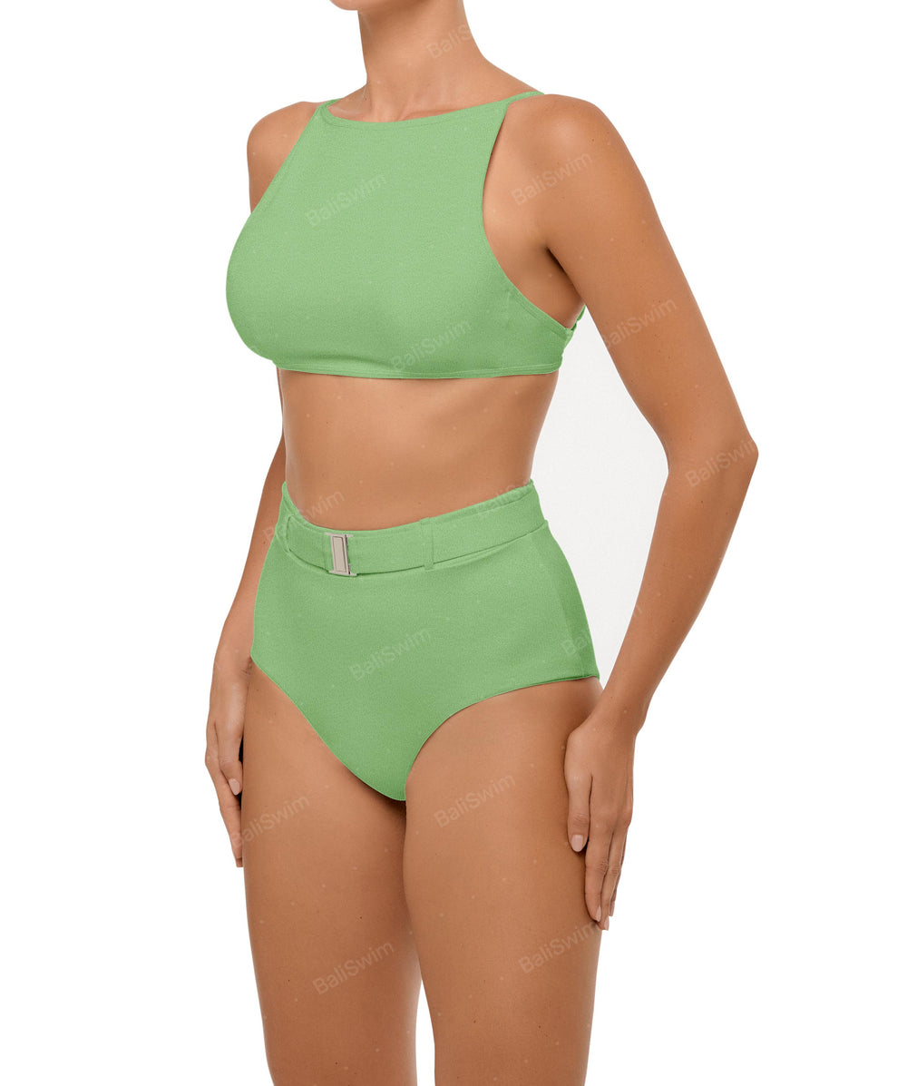 - Detail Feature: High rise bikini bottom, Detachable belt, Belt loops on waistband