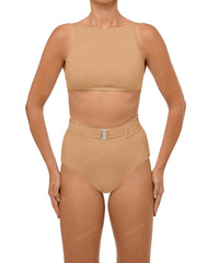 - Detail Feature: High rise bikini bottom, Detachable belt, Belt loops on waistband