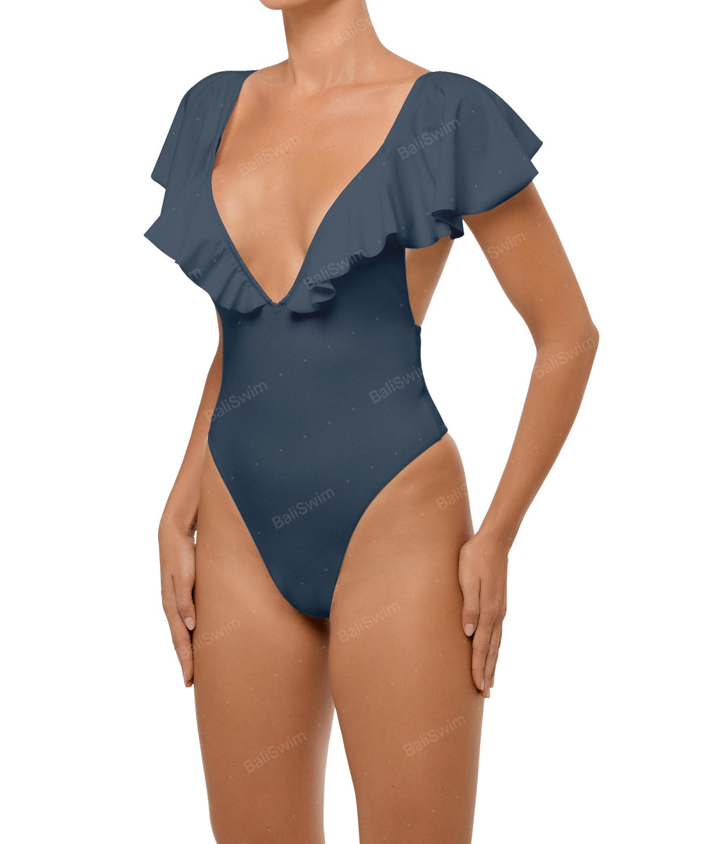 - Detail Feature: Flounce sleeves, Low V-neck, Low back, High cut