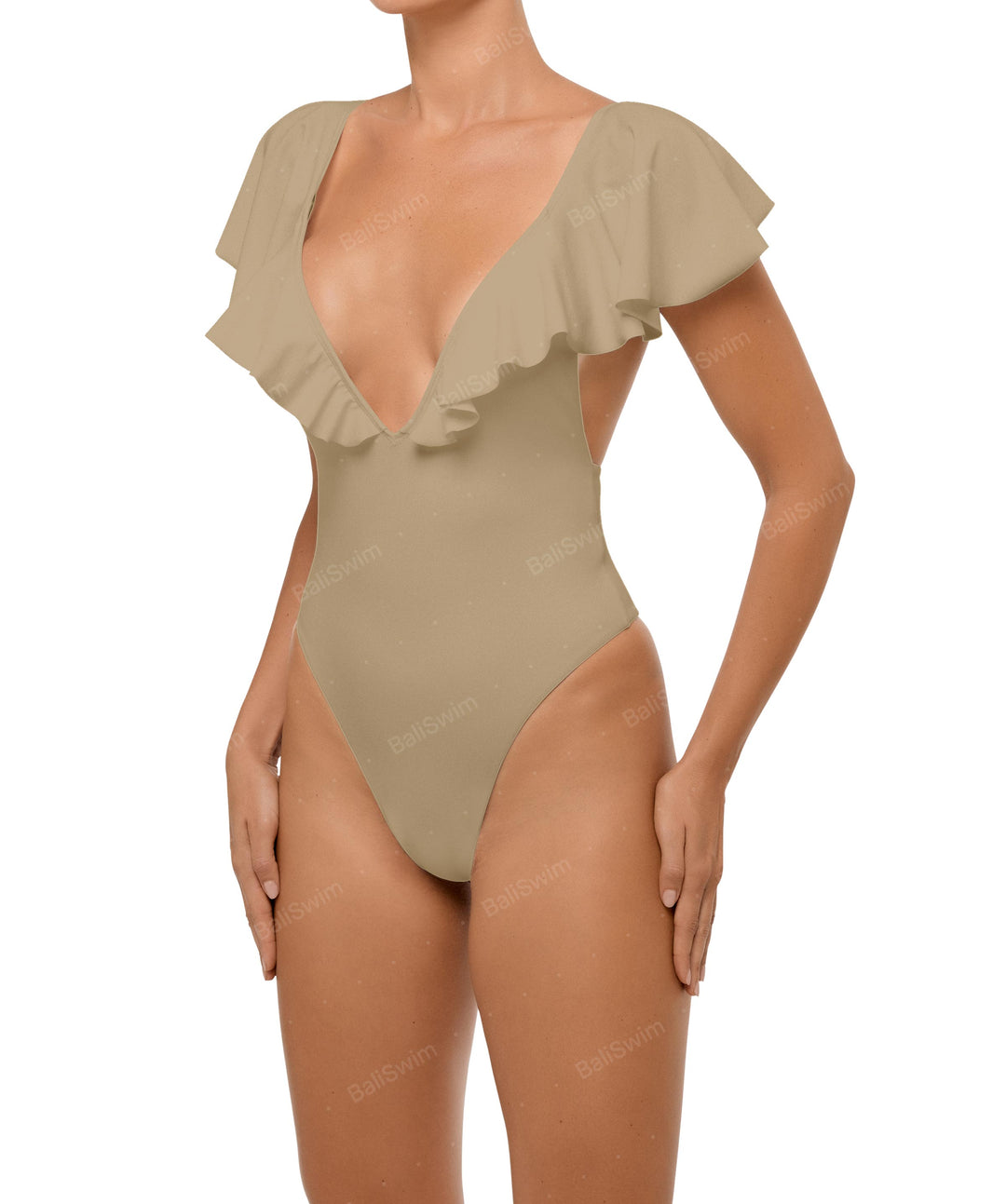 - Detail Feature: Flounce sleeves, Low V-neck, Low back, High cut