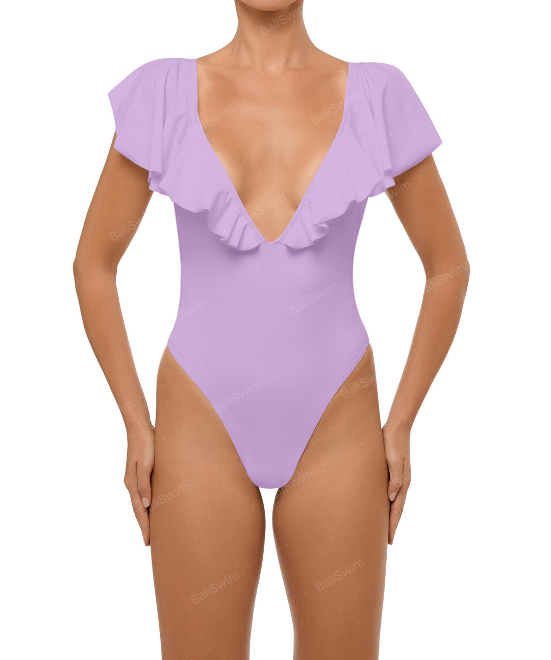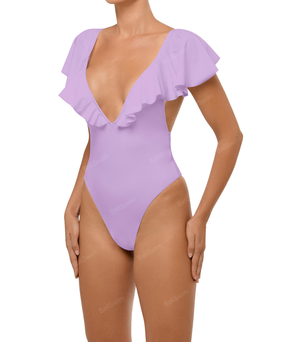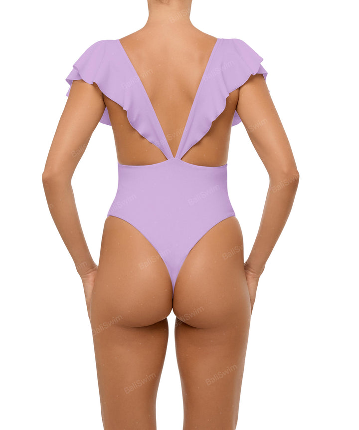 - Detail Feature: Flounce sleeves, Low V-neck, Low back, High cut