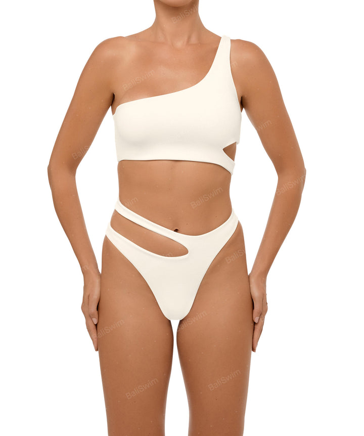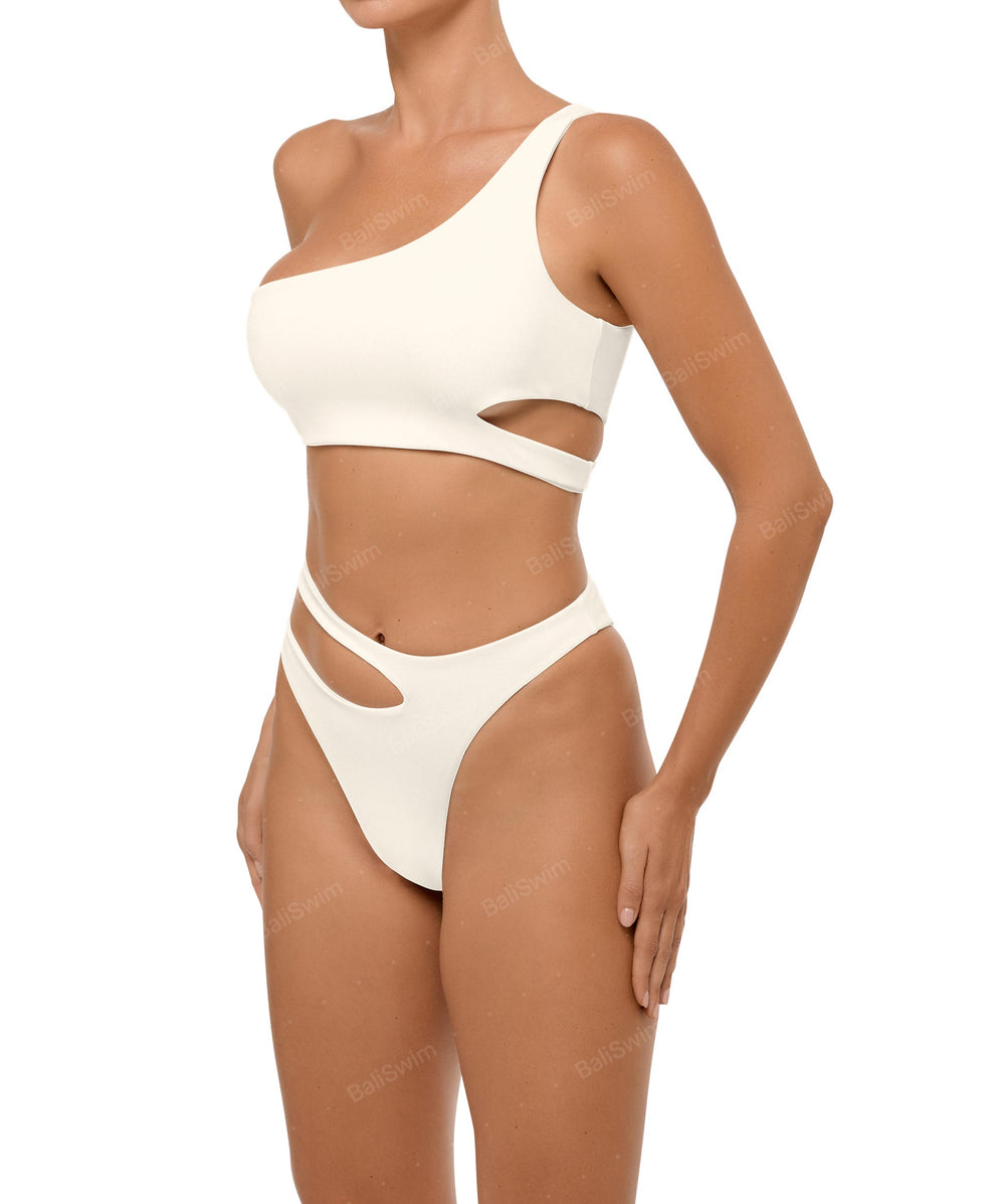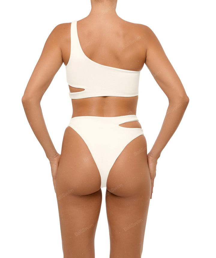 - Detail Feature: Asymmetric bikini top, Fixed shoulder strap, Side cut out detail, Pull on style