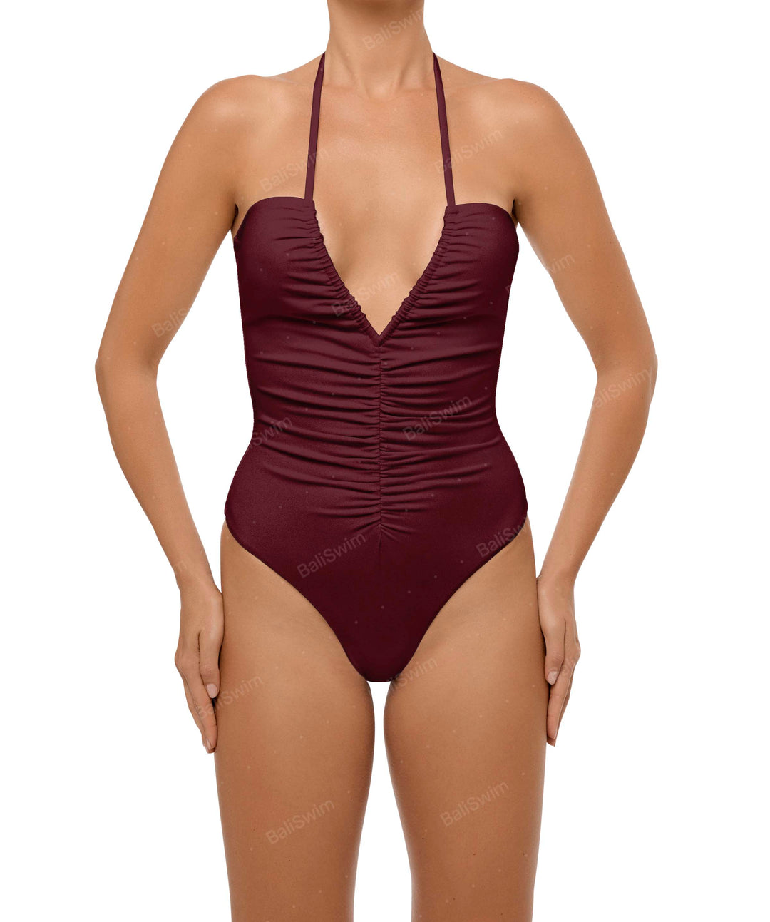 Plunge Neck Ruched Front One Piece