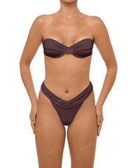- Detail Feature: Ruched v-waist on side, Low rise, High cut, Brazillian style