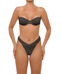 - Detail Feature: Underwire bandeau bikini top, Gathered bust detail, Clasp Closure