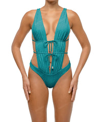 - Detail Feature: Deep V cut-out, Adjustable front coverage, Strappy detail, High cut
