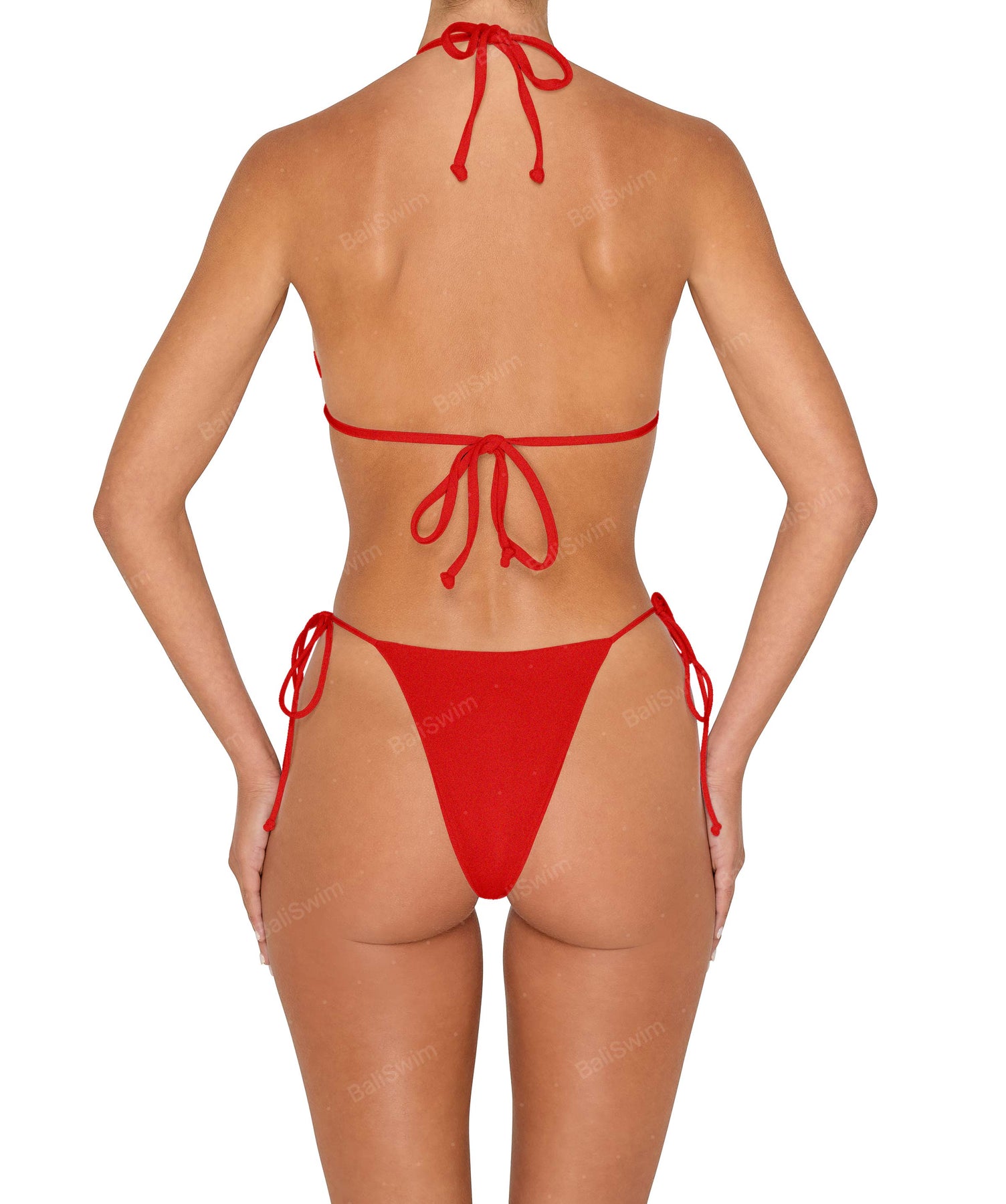 - Detail Feature: Side tide cheeky bikini bottom, 8mm self tie straps, seamless finishing with crochet emebllishment