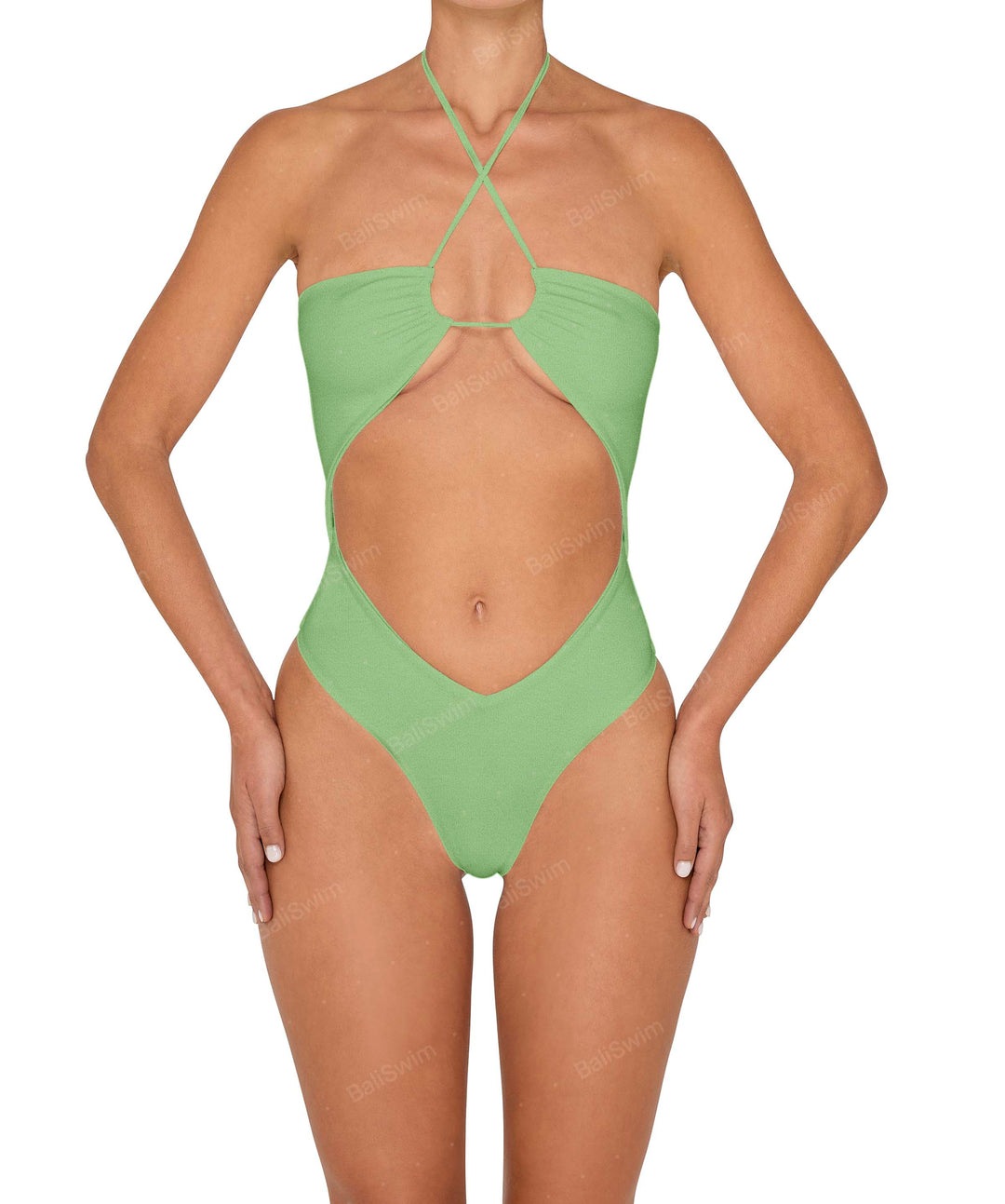 Halter Tie Neck One Piece With Center Front Cutout