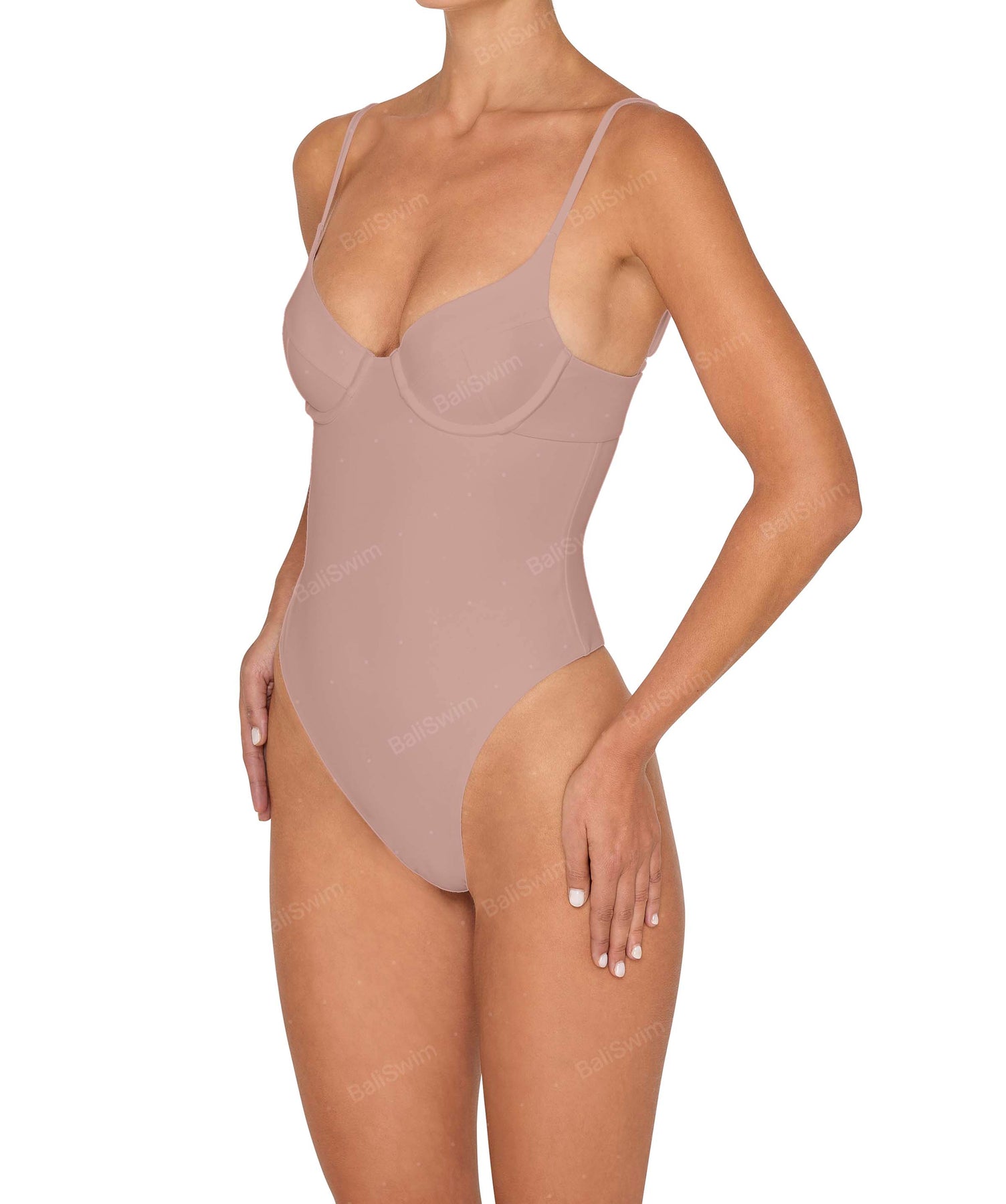 - Detail Feature: Classic underwire one piece with adjustable straps, high leg opening, back cut-out and back clasp