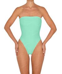 - Detail Feature: Classic strapless onepiece, high hip cut, silicon tape on the top bust to prevent slippage, and seamless finish