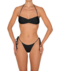 - Detail Feature: Side tie bottom with cheeky coverage, spaghetti strap, seamless finishing