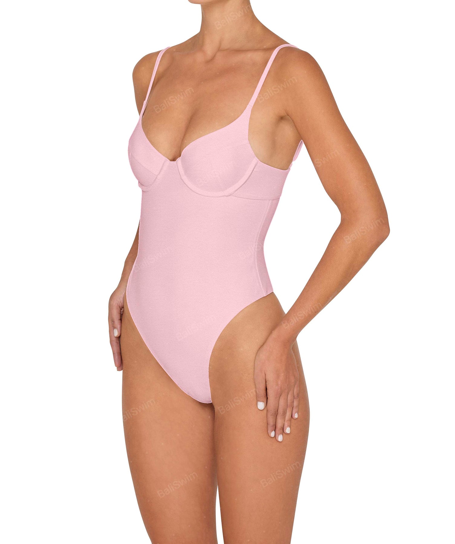 - Detail Feature: Classic underwire one piece with adjustable straps, high leg opening, back cut-out and back clasp