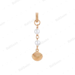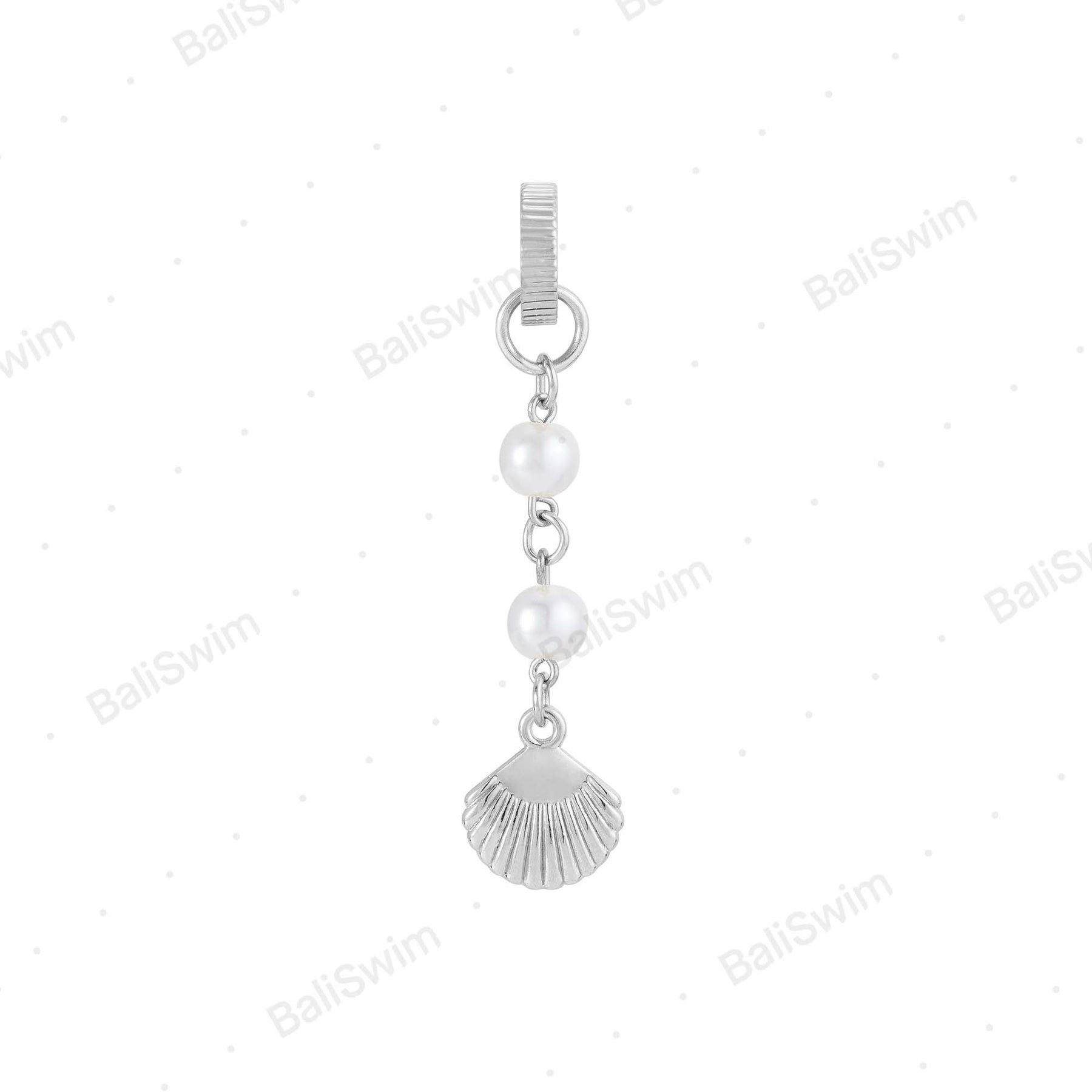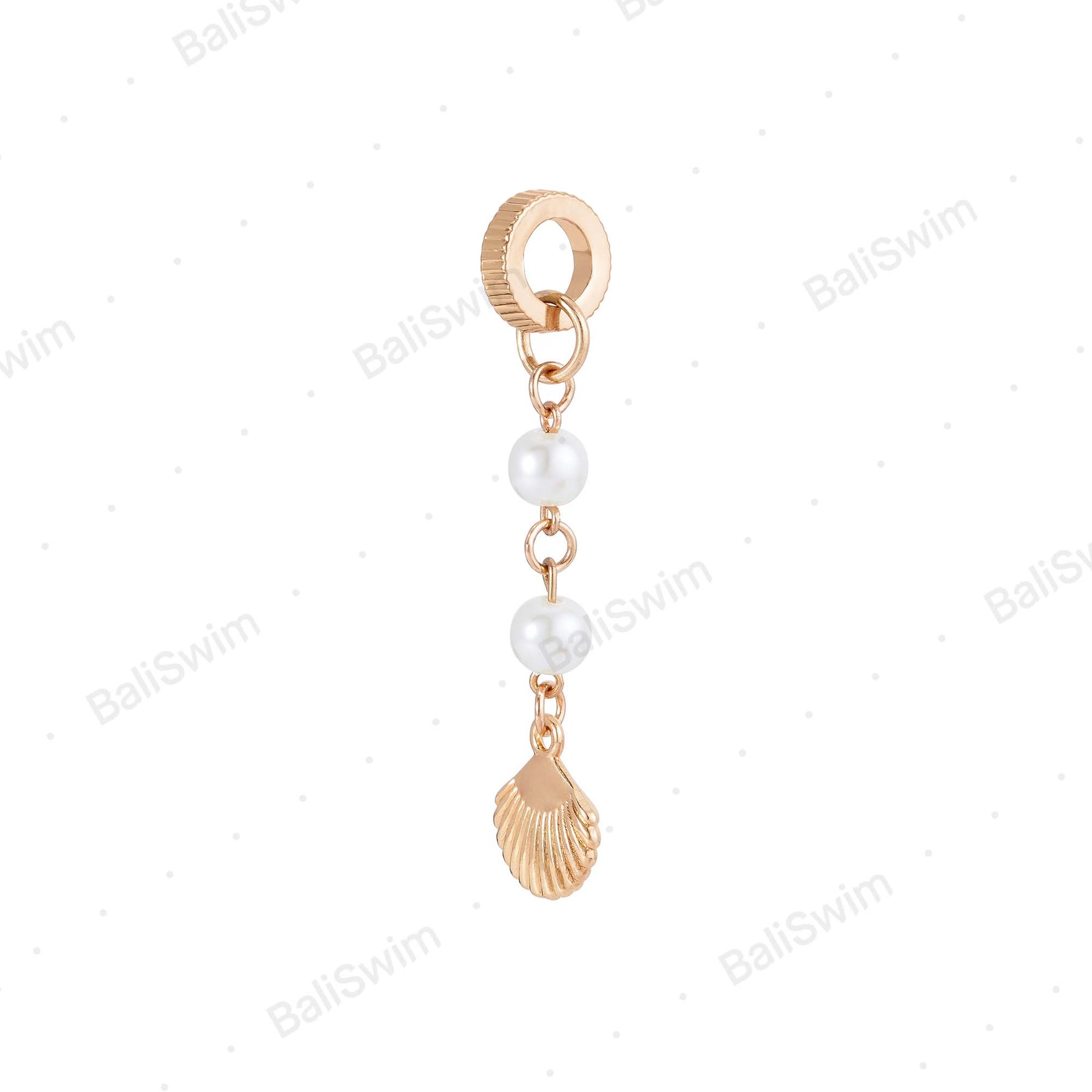 - Description: A delicate charm featuring two pearl beads arranged in a vertical chain, ending with a seashell charm. Finished with a small ring for easy application. The piece measures approximately 6 cm in length and 1.5 cm in width.