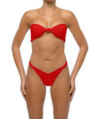 - Detail Feature: V-waist bikini top, Front Knotted detail, Mid rise, High cut