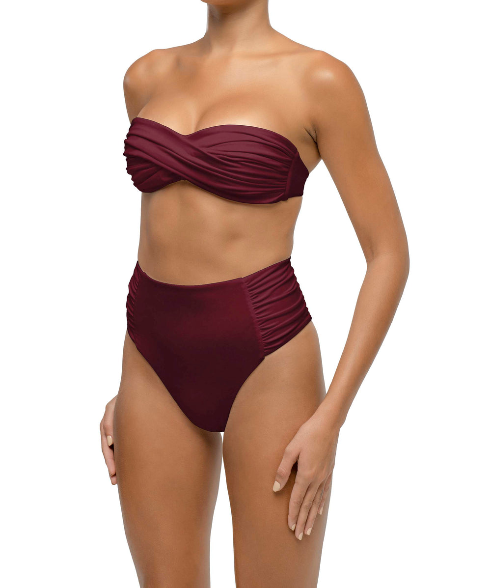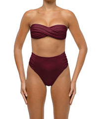 BSWS-B127 Side Shirred Paneled High Waisted Bikini Bottom