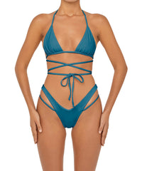 - Detail Feature: Mid-rise, High-cut bikini bottom with a V-waist and Side strap detail