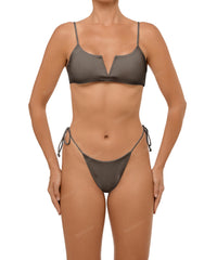 - Detail Feature: Side tie bikini bottom, Adjustable thin straps closure, Mid rise, High cut, Brazilian style