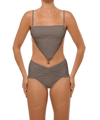 - Detail Feature: High rise bikini bottom, Ruched detail, Wide sideseam, Brief style