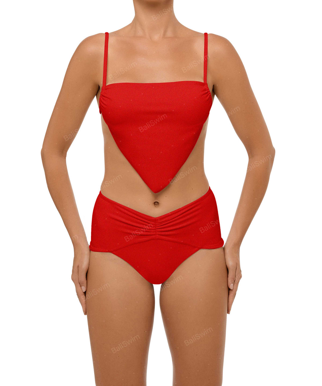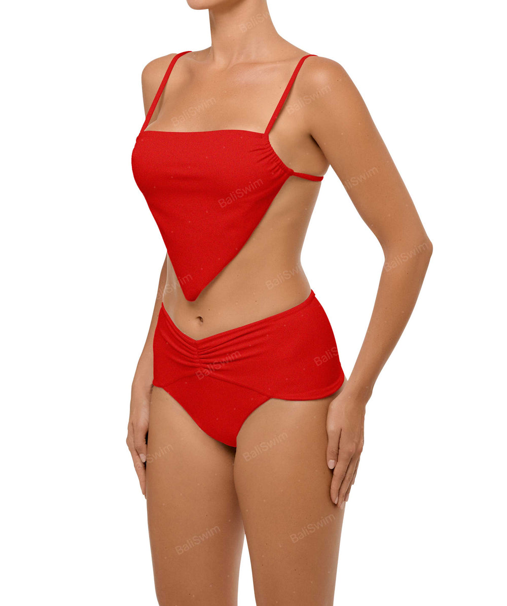 - Detail Feature: High rise bikini bottom, Ruched detail, Wide sideseam, Brief style